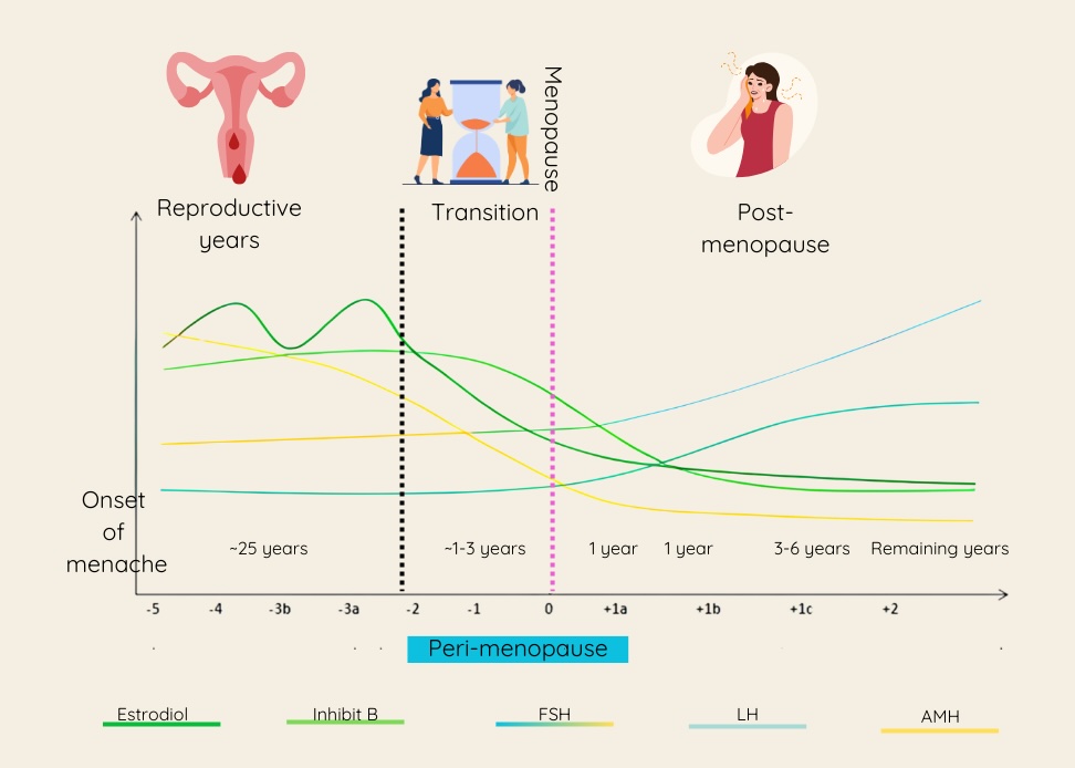 During menopause, there are changes in hormone levels. The levels of sex hormones like estrogen instance, after a woman's final menstrual cycle, the concentration of Follicular Stimulating Hormone (FSH) in the blood increases by an average of 68%. At the same time, there's a decrease in estradiol by about 60% and estrone by 32%, compared to levels 1–6 months before the final menstrual cycle (4).